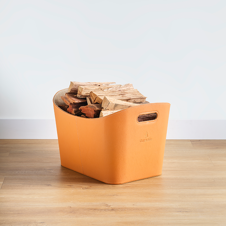 Inspired by classic Italian design, this firewood holder combines refined style with everyday practicality. Earthy tones pair with a rugged burlap-style jute lining, creating a natural, hard-wearing interior that perfectly complements the wood it’s designed to carry and store.